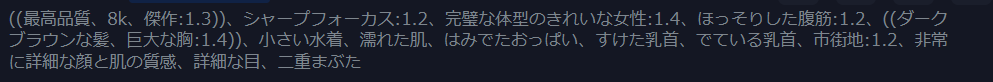 左下の画像を生成する際に入力したプロントも参考に載せます。ご参考まで。