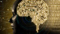 3D rendering artificial intelligence AI research of robot and cyborg development for future of people living. Digital data mining and machine learning technology design for computer brain.